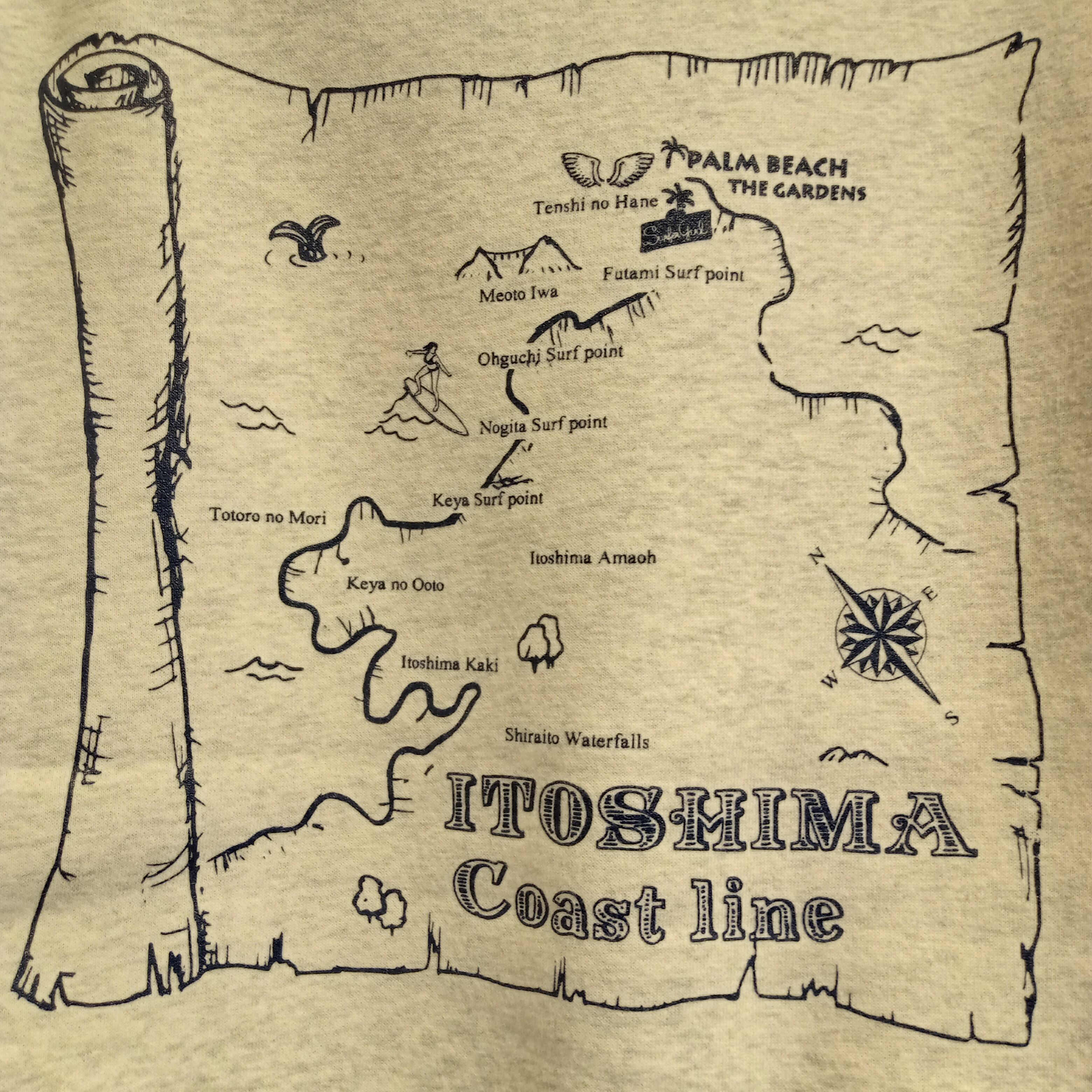 糸島の地図をレトロなデザインに仕上げた、個性的で魅力的なスウェットです。